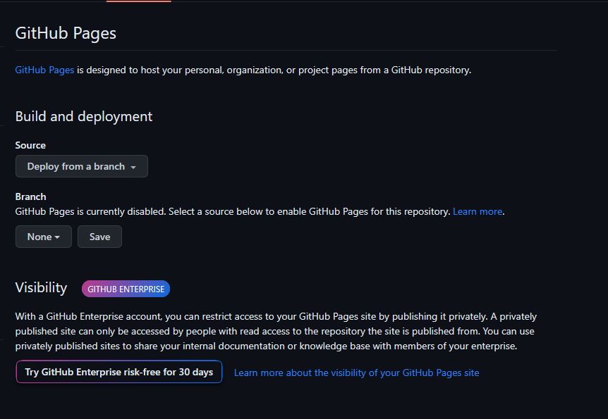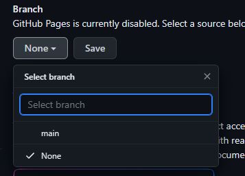 - Entre las diferentes opciones de Pages, nos fijaremos en dos específicas, "Source" y "Branch"