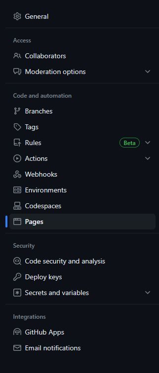 - En el apartado de configuración buscamos en la columna izquierda la opción "pages"